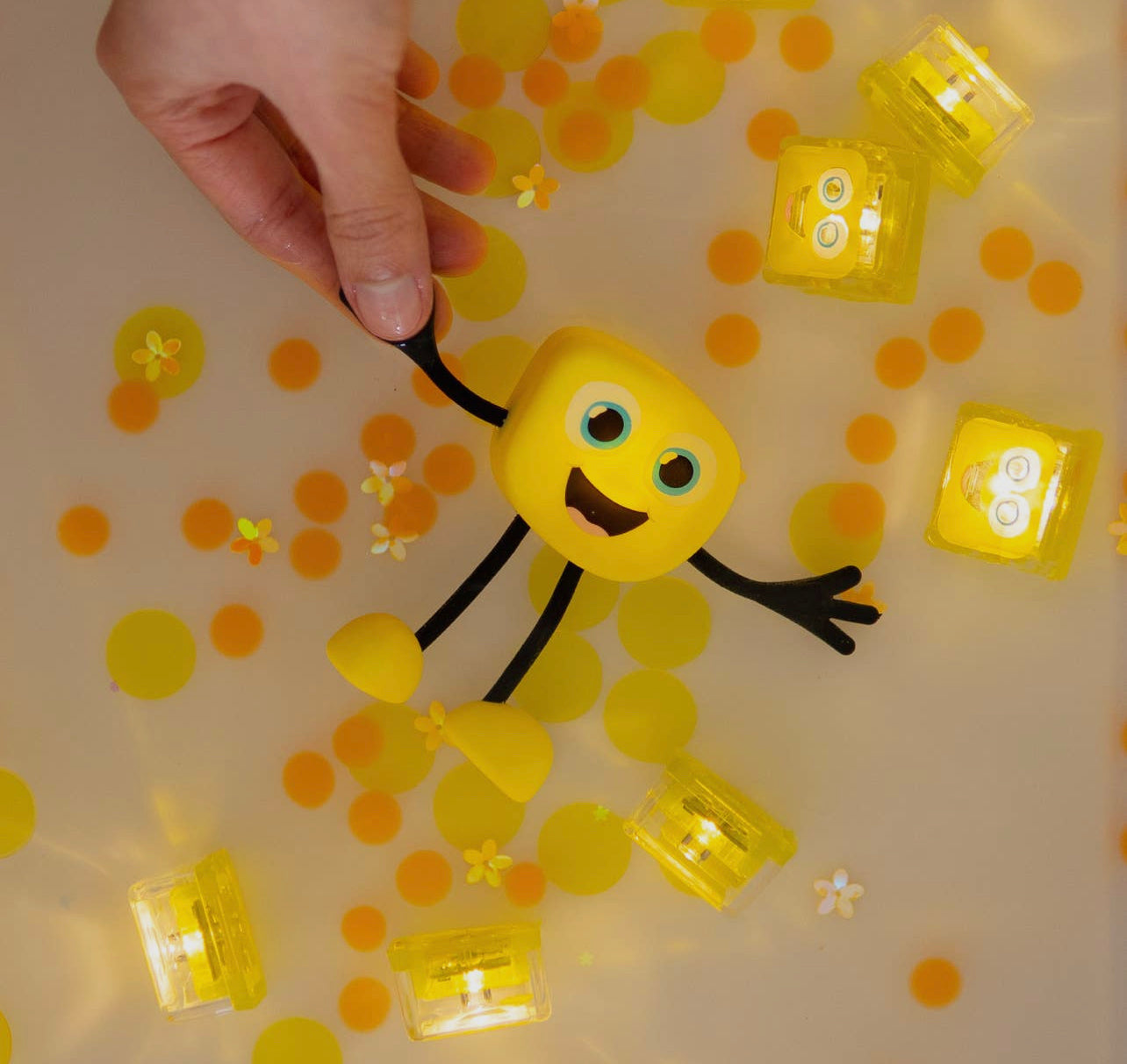 When playtime is over, shaketo remove water from inside your Glo Pals® Light-Up Cube.