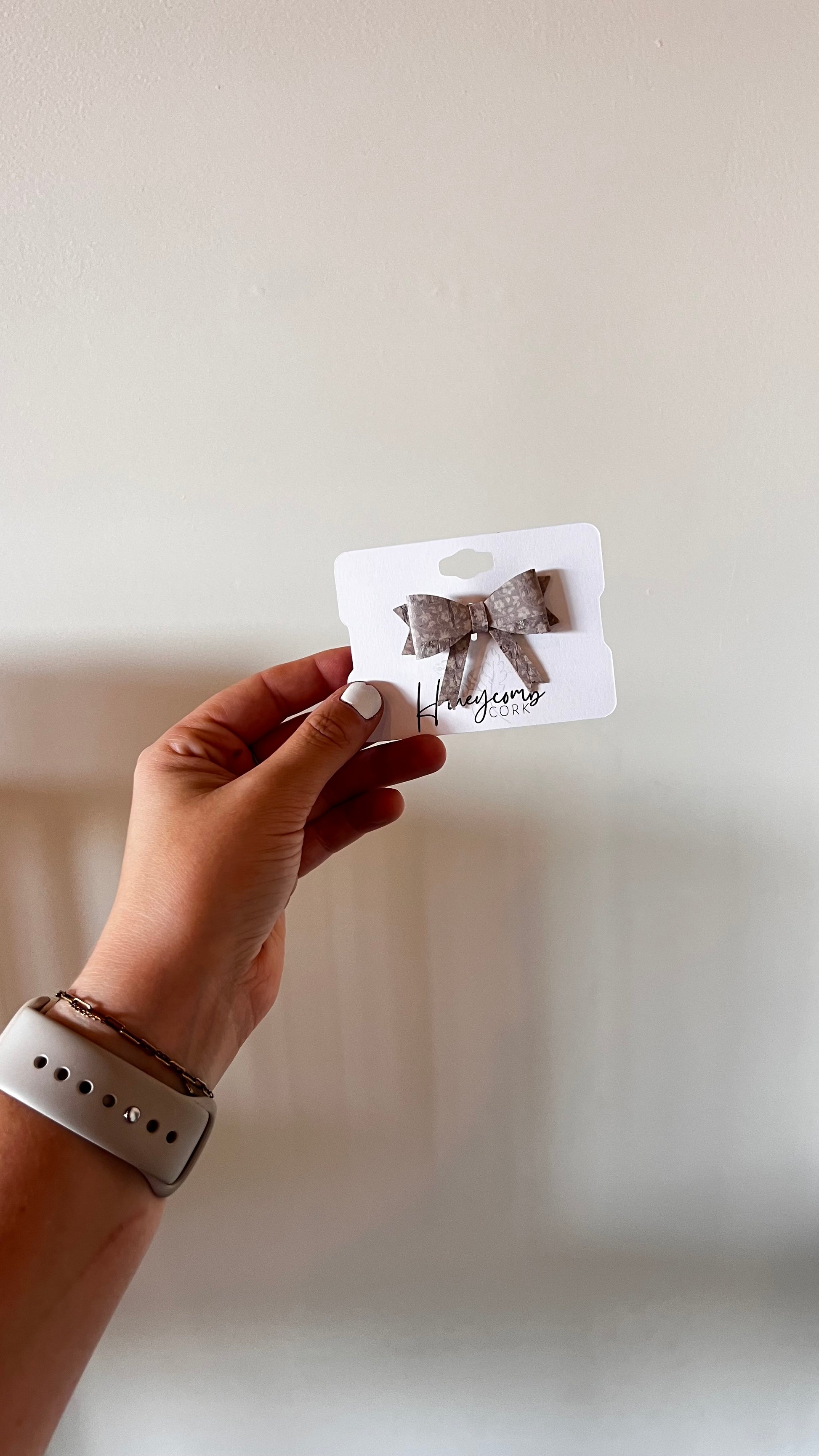 Honeycomb Cork - Sadie Bow - Clip - Grey Floral