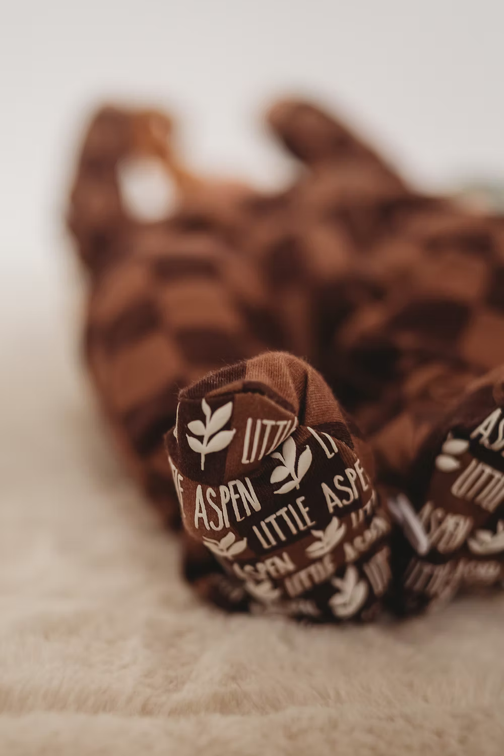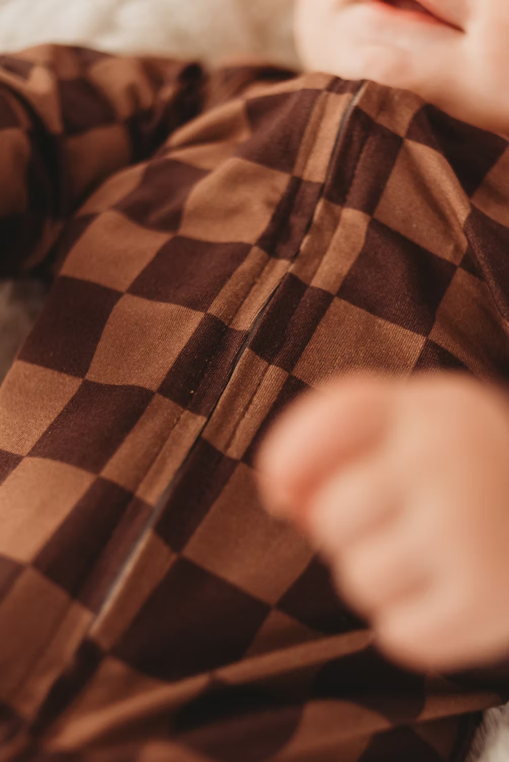 Little Aspen Baby Co - Espresso Checkers Footed Sleeper