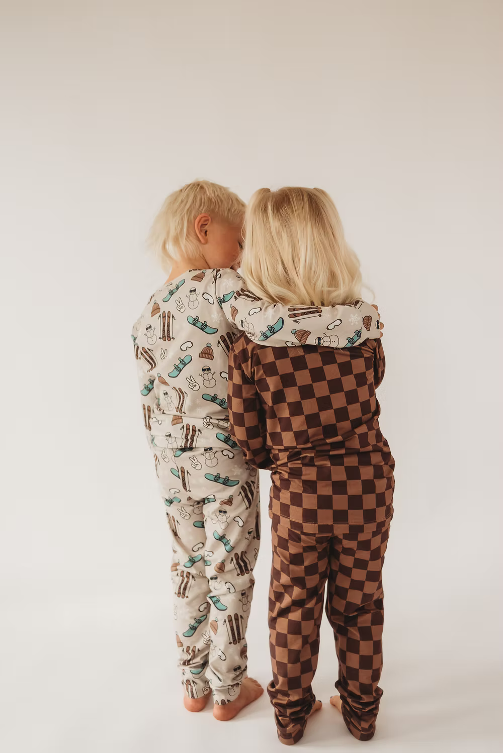 Discover the Espresso Checkers 2 Piece Set, perfect for your little one’s bedtime routine. Made from an organic cotton spandex blend, these pajamas give a soft, stretchy hug that lasts through endless adventures and sweet dreams. Each set embodies our commitment to quality, sustainability, and style. Treat your toddler to the best with this adorable and functional 2-piece set! Thoughtfully designed in Alberta, Canada.